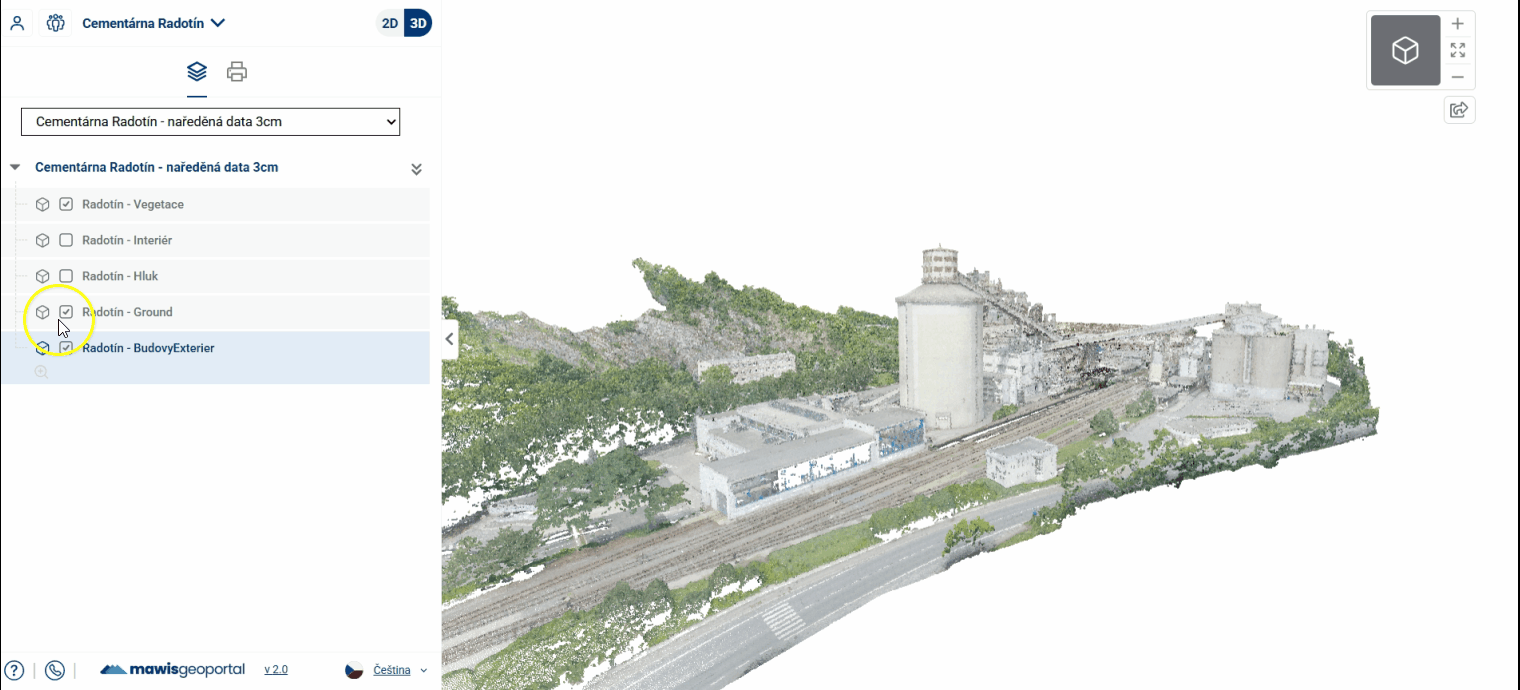 - také ve 3D lze zapínat a vypínat jednotlivé vrstvy